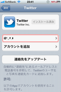 3.既に設定してあるアカウントが表示されてるので、そのアカウントをタップ。