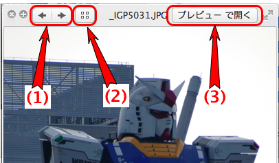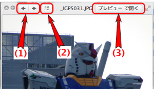 4.クイックルックのウィンドウの上部にいくつかあるボタンの説明。