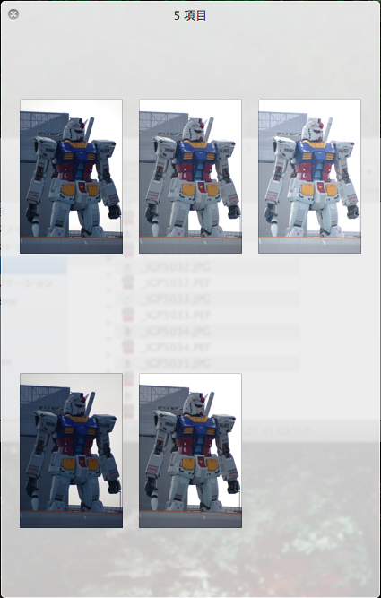 3.そうすると、今回は5個選択したのでその中の最初の画像がクイックルックのウィンドウで表示される。