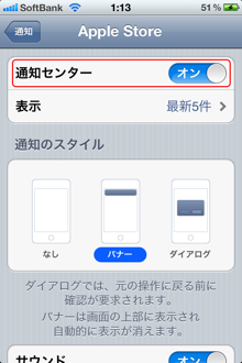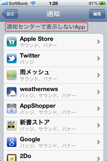 4.「通知センターで表示しないApp」のところに今オフにしたアプリが表示されているので、これでOK。