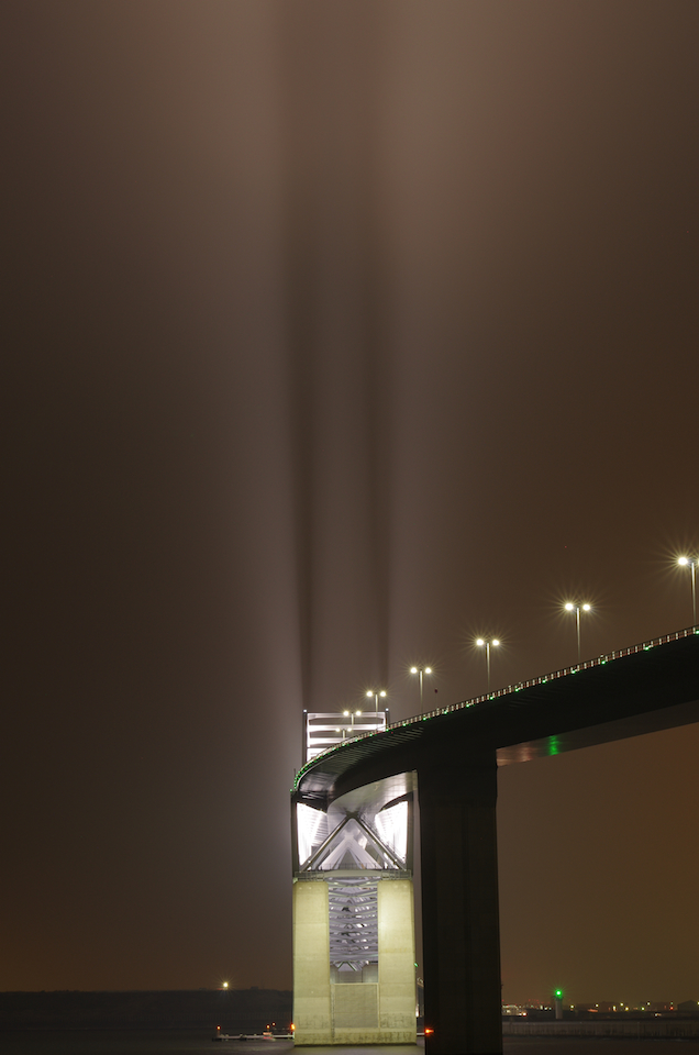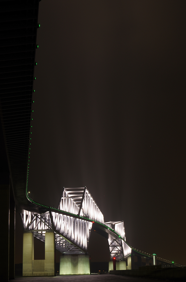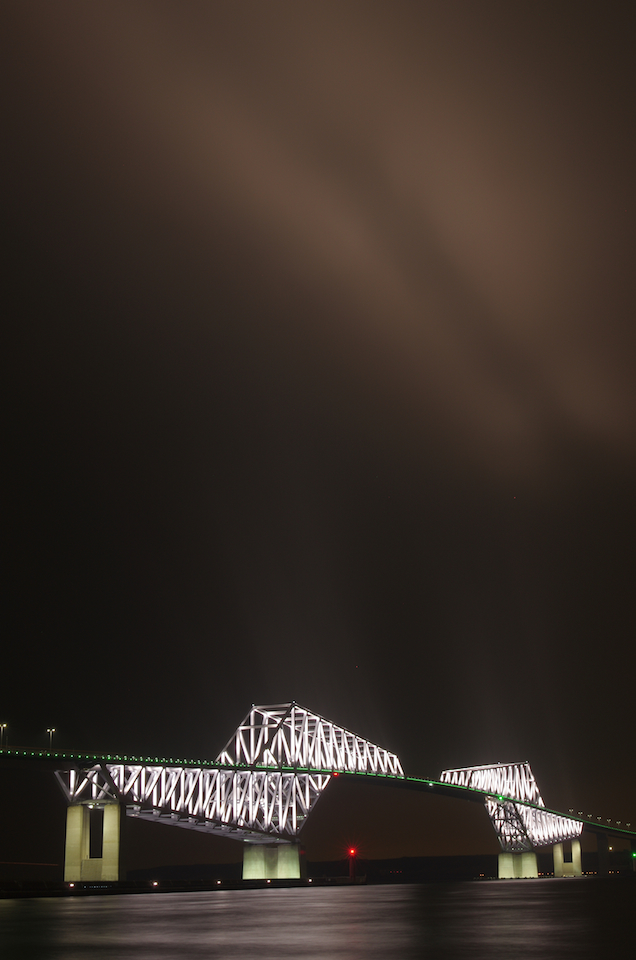 iPhoneで見えるかな?画面の明るさをちょっと上げると分かりやすいかも。雲に橋の光が反射して空に道が出来てるようだ…