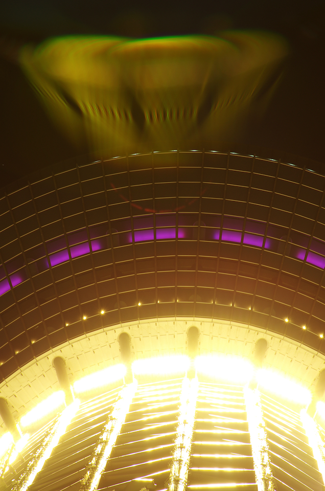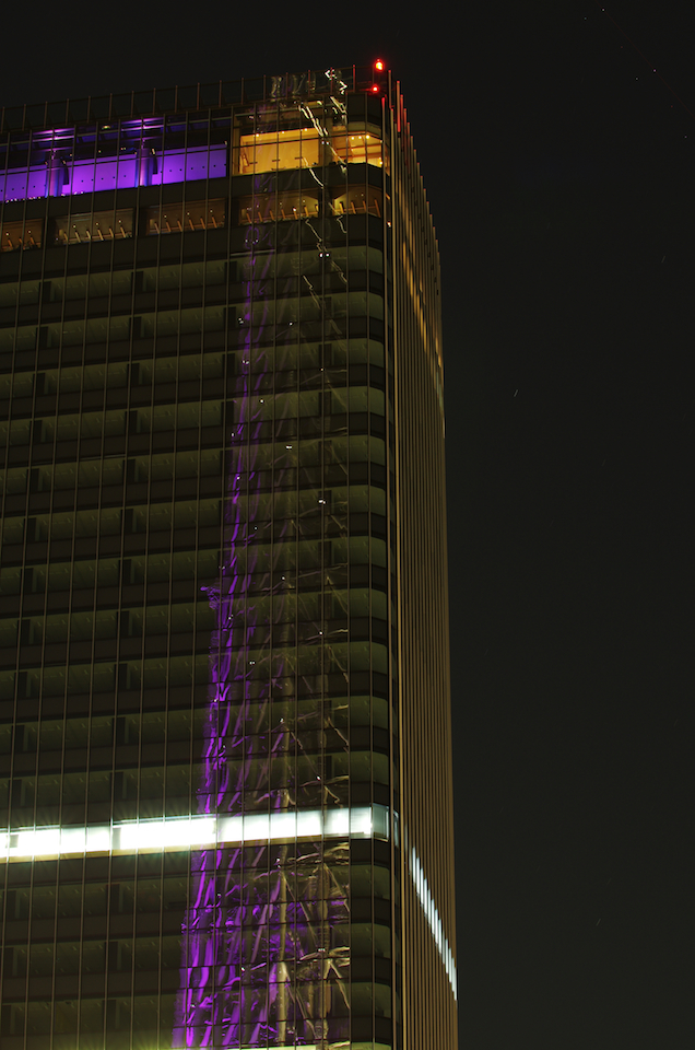 行ったはいいけど、拍子抜け。ブルーの時とは打って変わって地味!しかも紫の色は片面だけって言う中途半端なライトアップ。